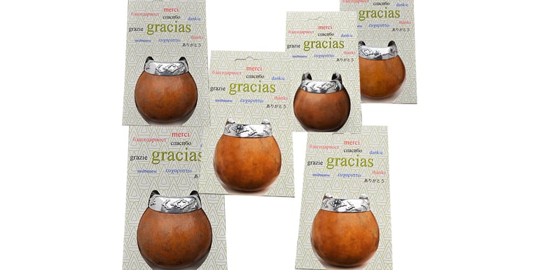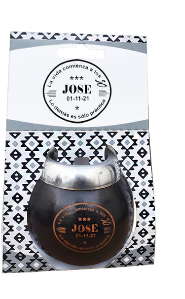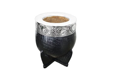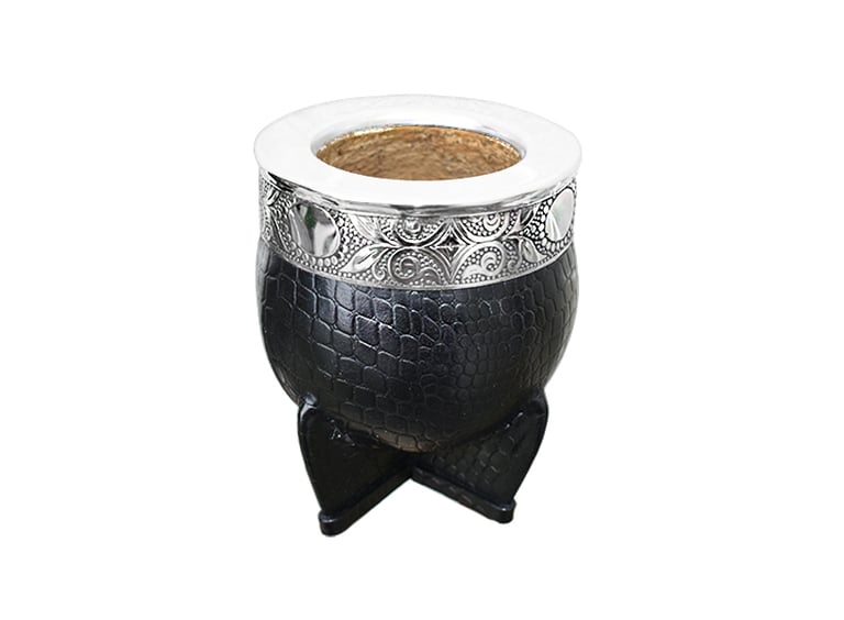 Mate modelo Imperial. Calabaza natural seleccionada. Forrada en cuero natural croc. Virola y fleje de alpaca cincelada. Personalización laser